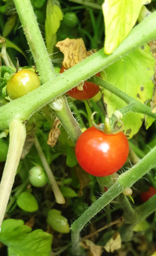 On a side note, potato plants can sometimes grow poisonous fruit. Make sure you DON’T EAT it! I only know because ours grew some, so I googled to see what it was. I took a picture to show you.