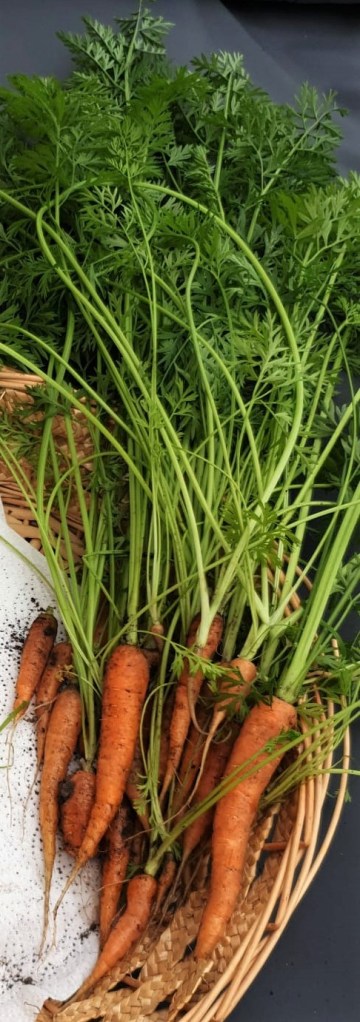 Carrots so super easy! Our big mistake this year, was planting too many carrot seeds too close together. This meant that not all the seeds could get all the nutrients they needed, so most of them came out really small! haha very cute….really difficult to peel!! The seed packet will have all the instructions on the back, follow them! They need plenty of sunlight and water. The best way to test if they are ready to harvest, is to brush some of the soil off from around the top, and if they look like a good size and colour, brush a little more, give it a wiggle and pull!